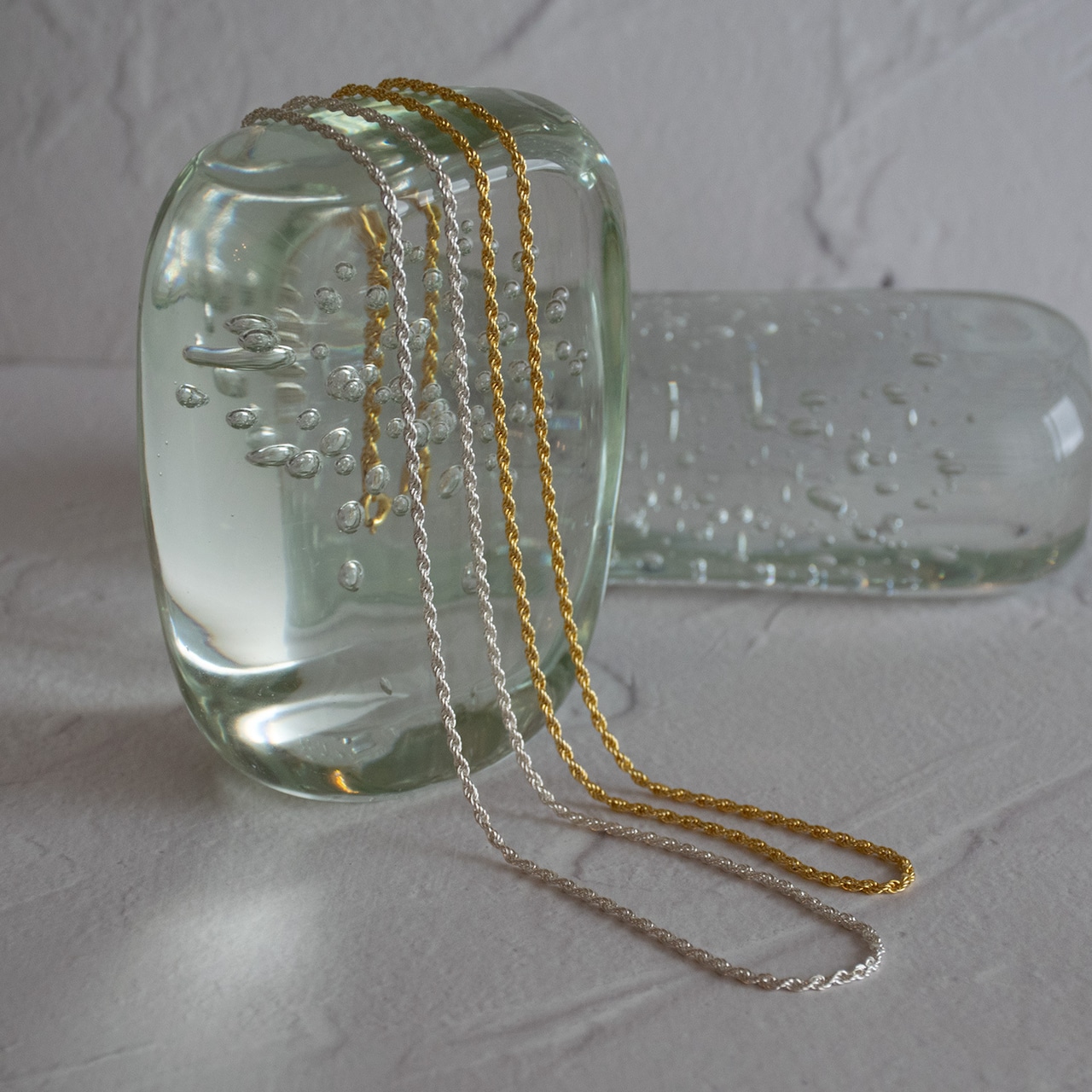 もともとは細いラインにねじりを加え、それを編む事でシンプルながらも立体感と深みのあるデザインに仕上げました