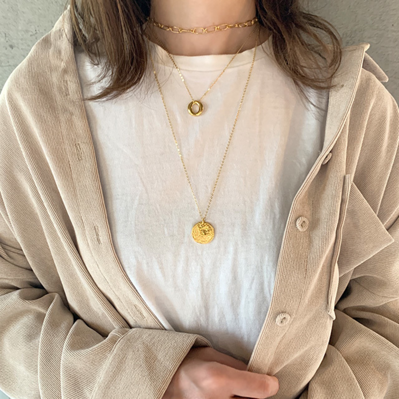 ロングチェーンや首に添うネックレスとの重ね付け、お手持ちのチャームと組み合わせてもお楽しみください。