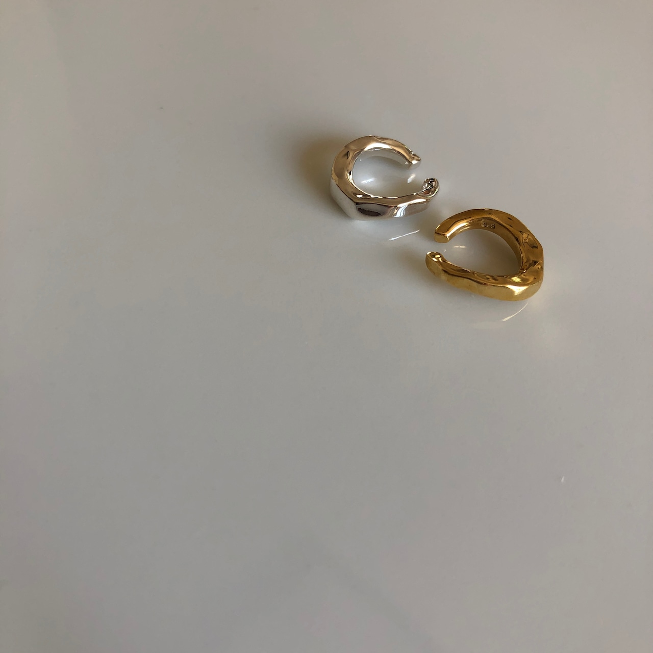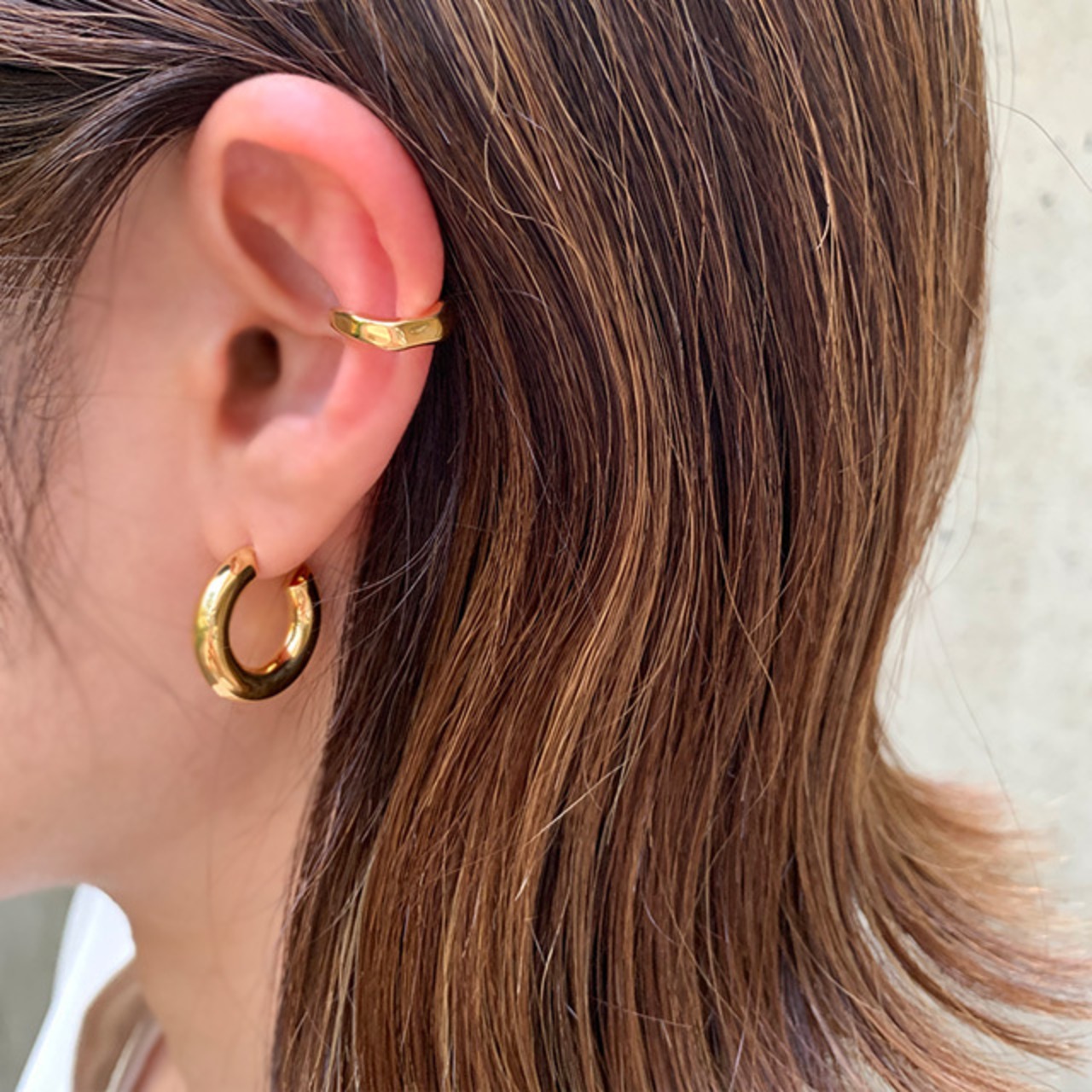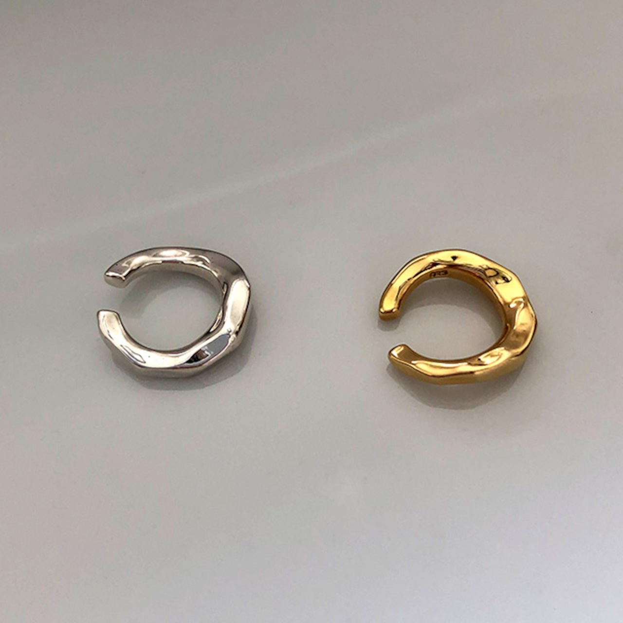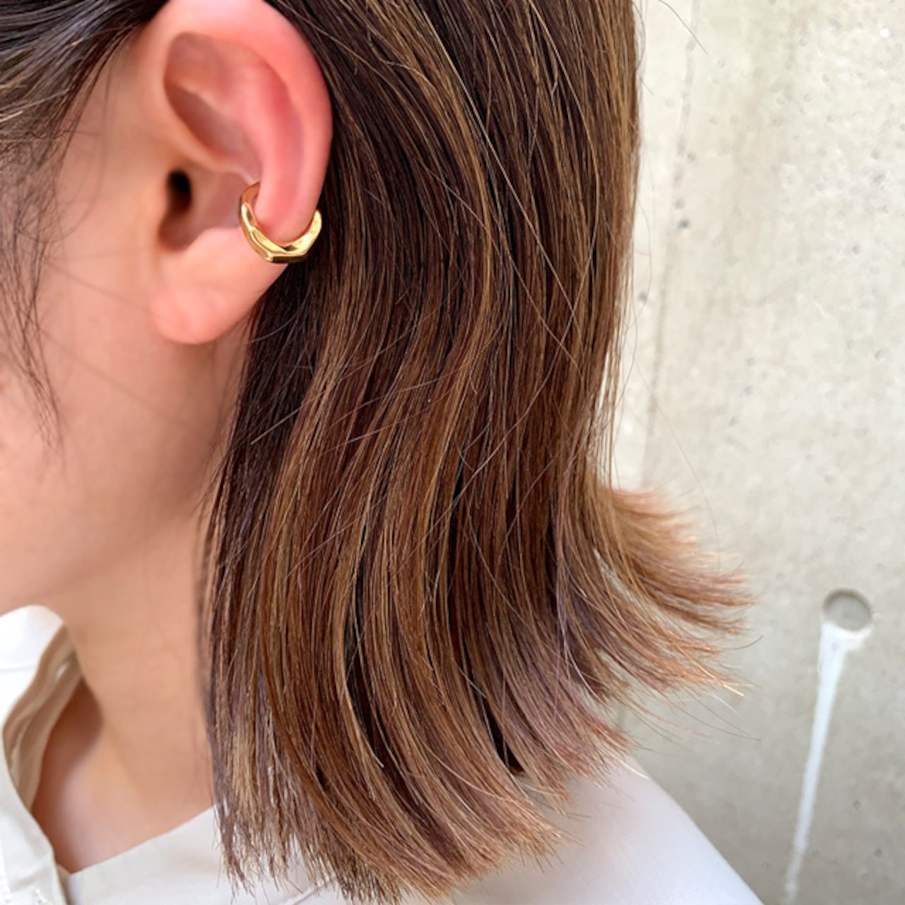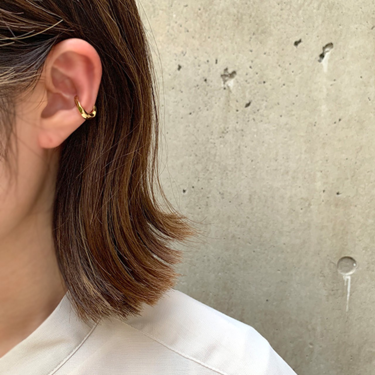 優しい温もりのある雰囲気と、このいびつさがあいまって表情のある質感のイヤーカフです