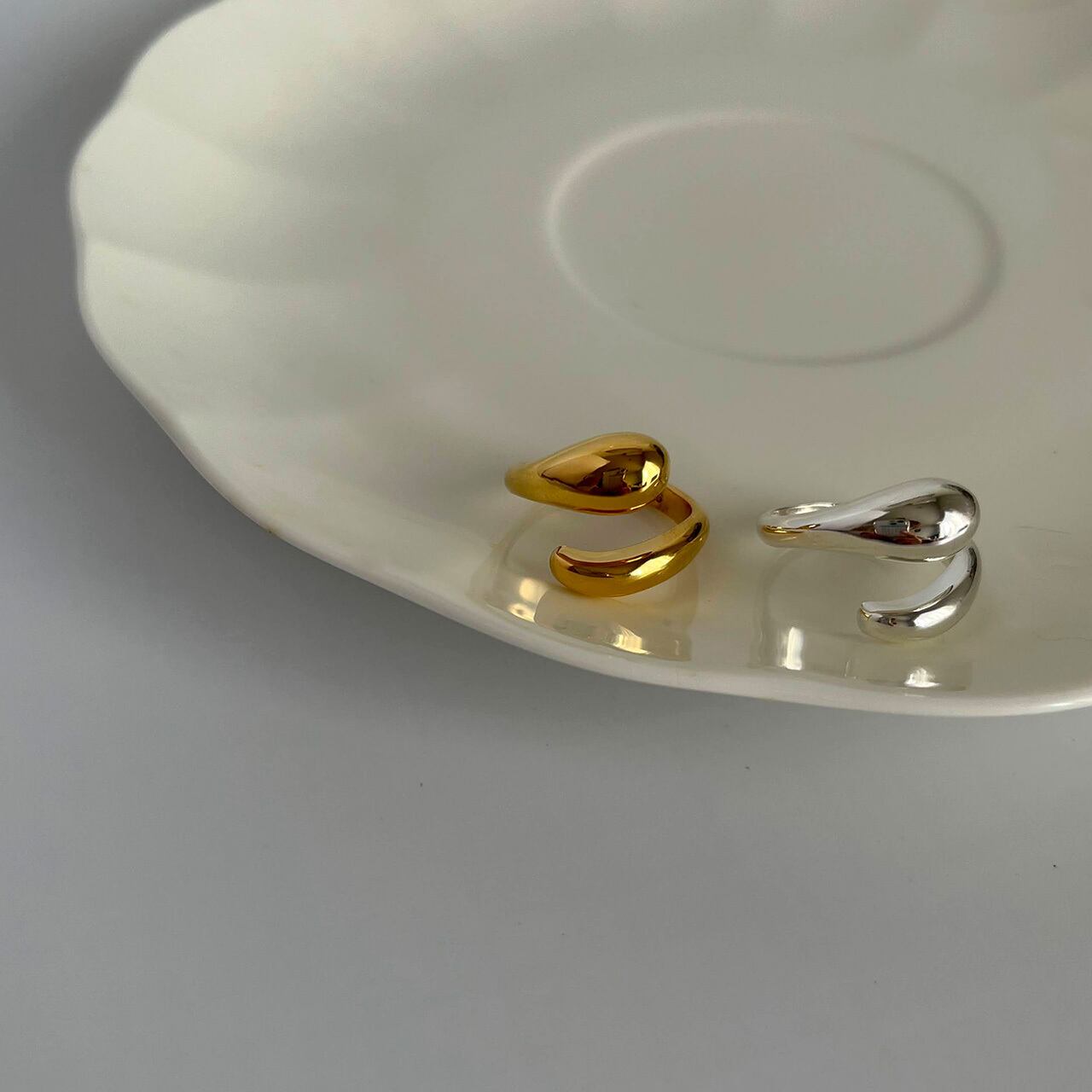 雫を落としたようなぷっくりとした滑らかな曲線が目を惹くmiel ring