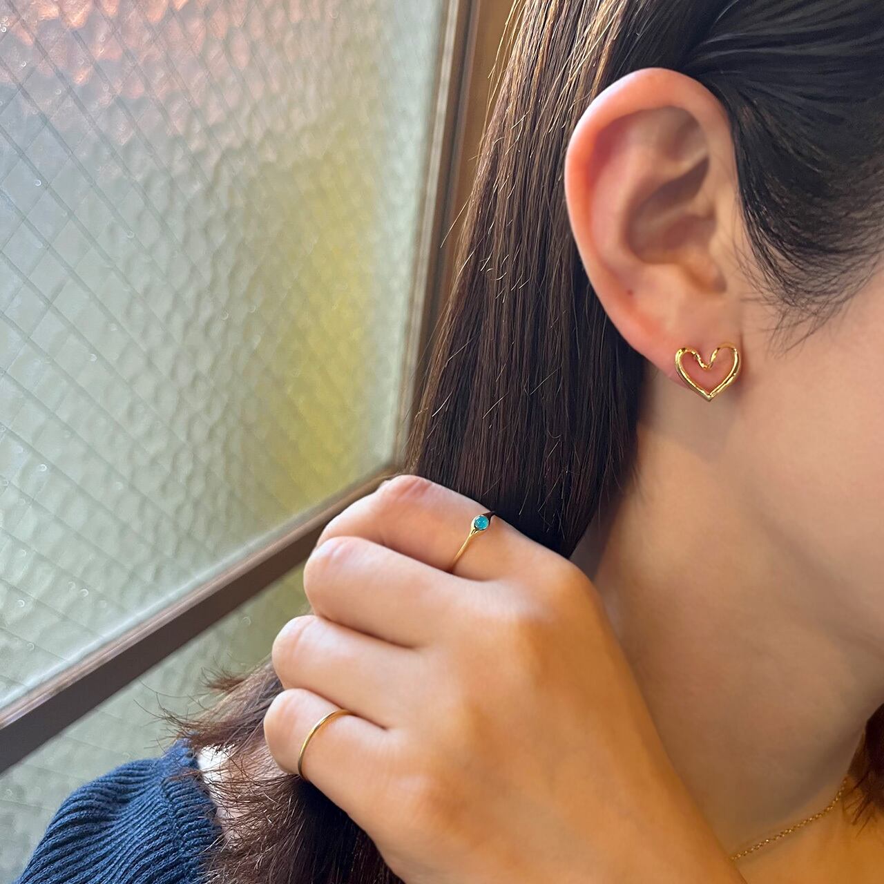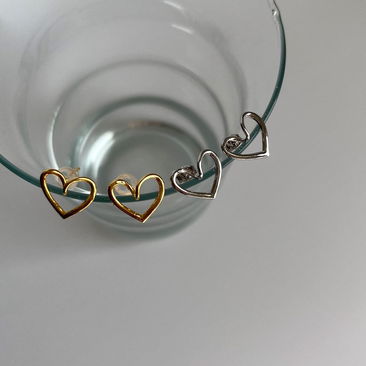 一本のラインでハートを描いた立体感のあるOpen Heartピアスです