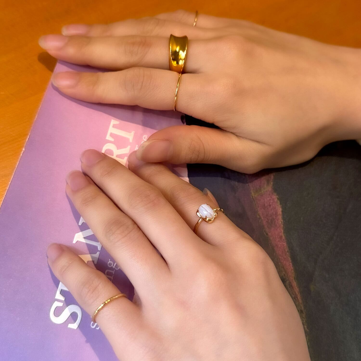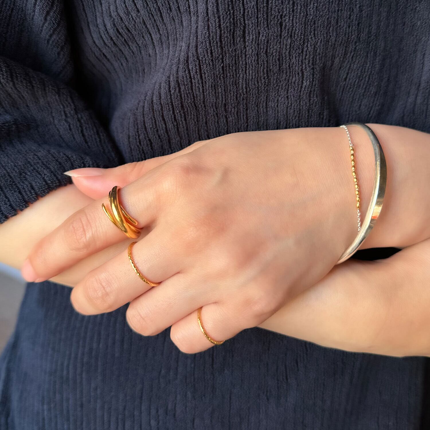 小指と中指と人差し指にこのリングだけを付けても可愛いし、ボリュームリングとのバランスもとても良いので、持っているとどんな時にもきっと活躍してくれますよ♡