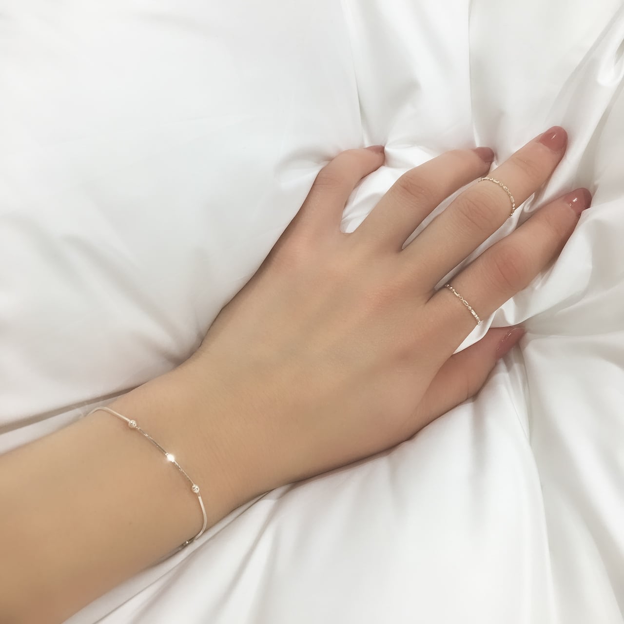 動くたびに微かにきらめく華奢なブレスレット