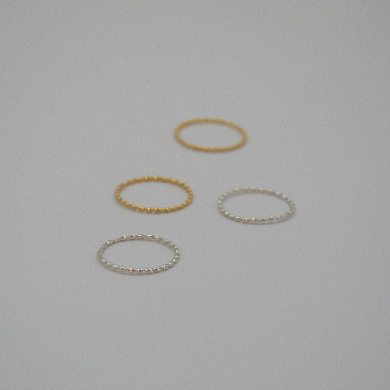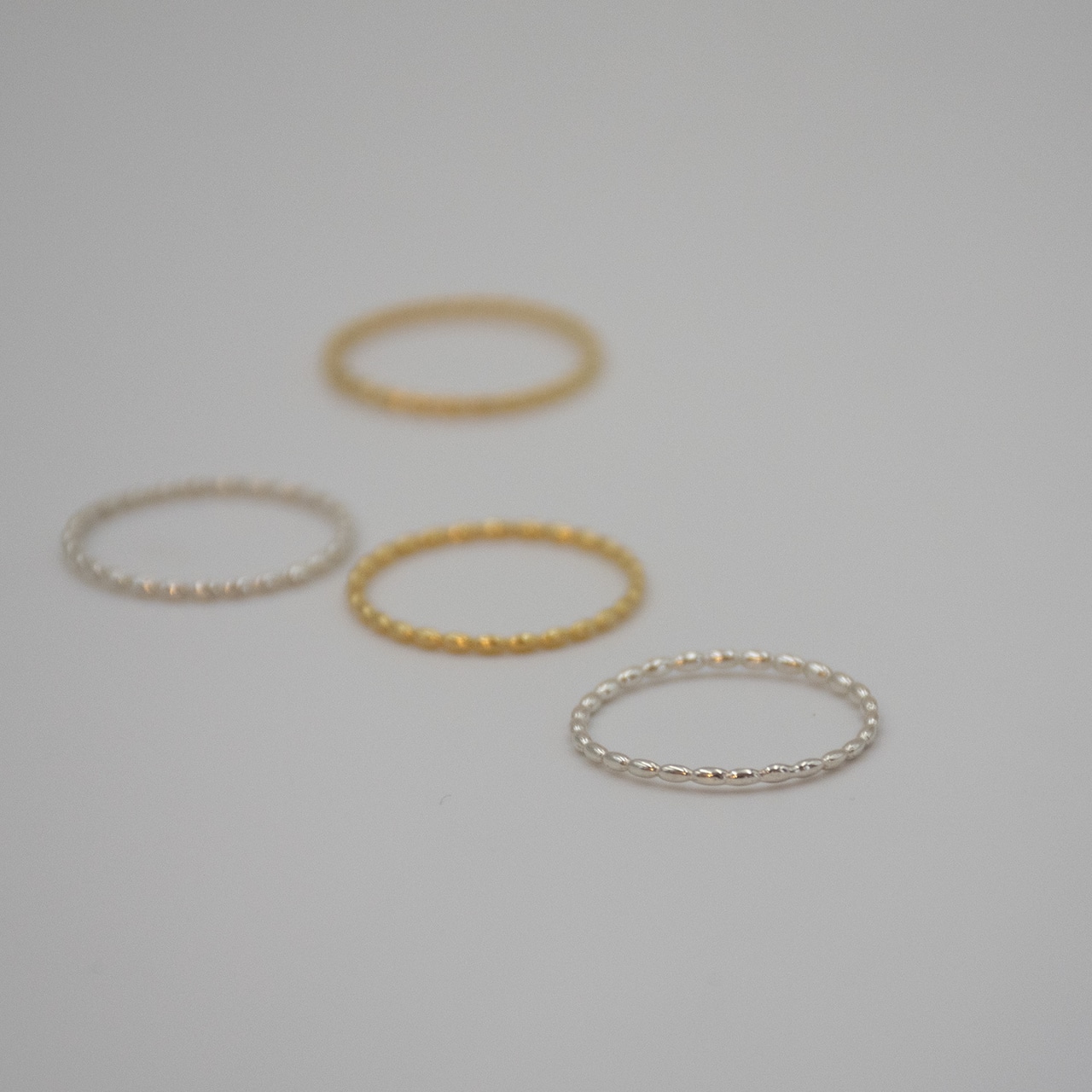 小さなドットの粒を並べてアクセントを施した大人可愛い華奢リングです