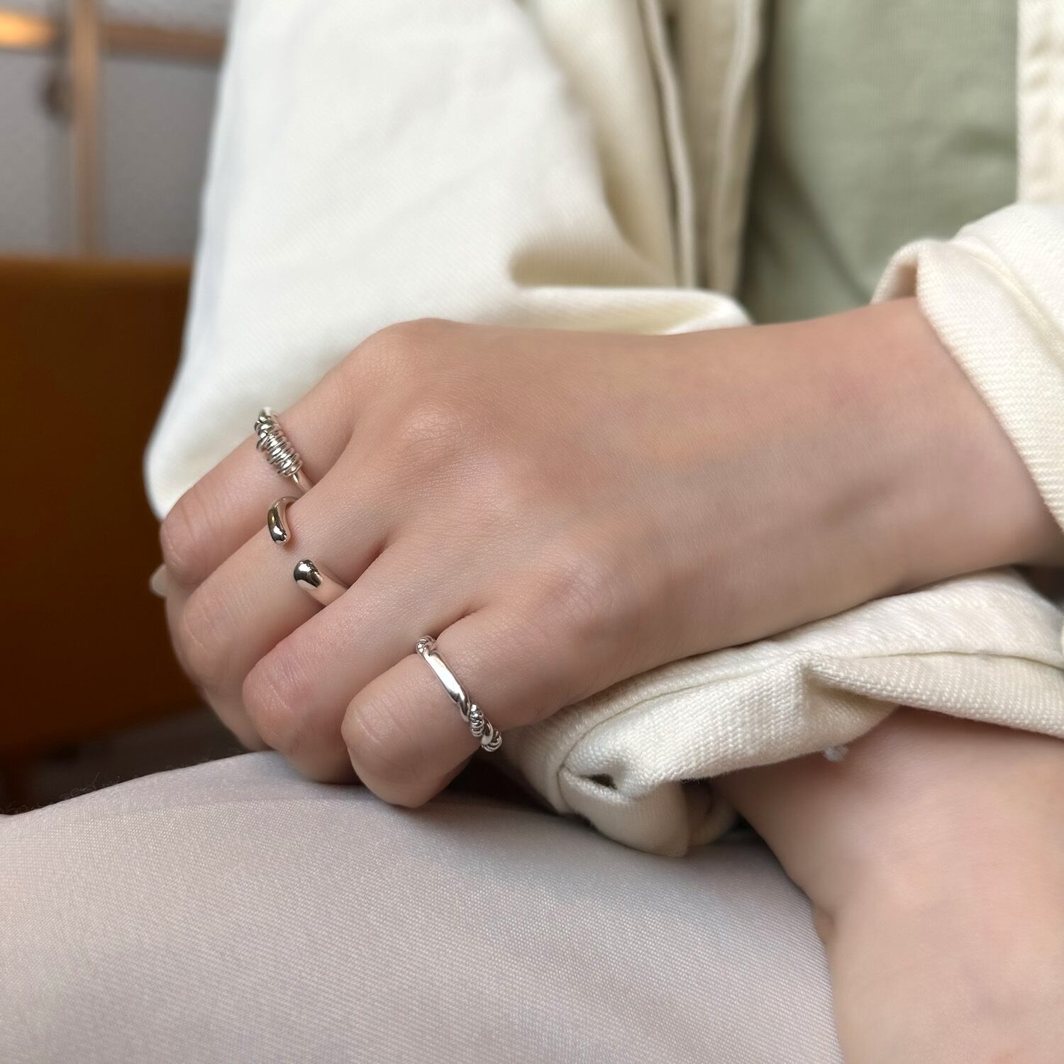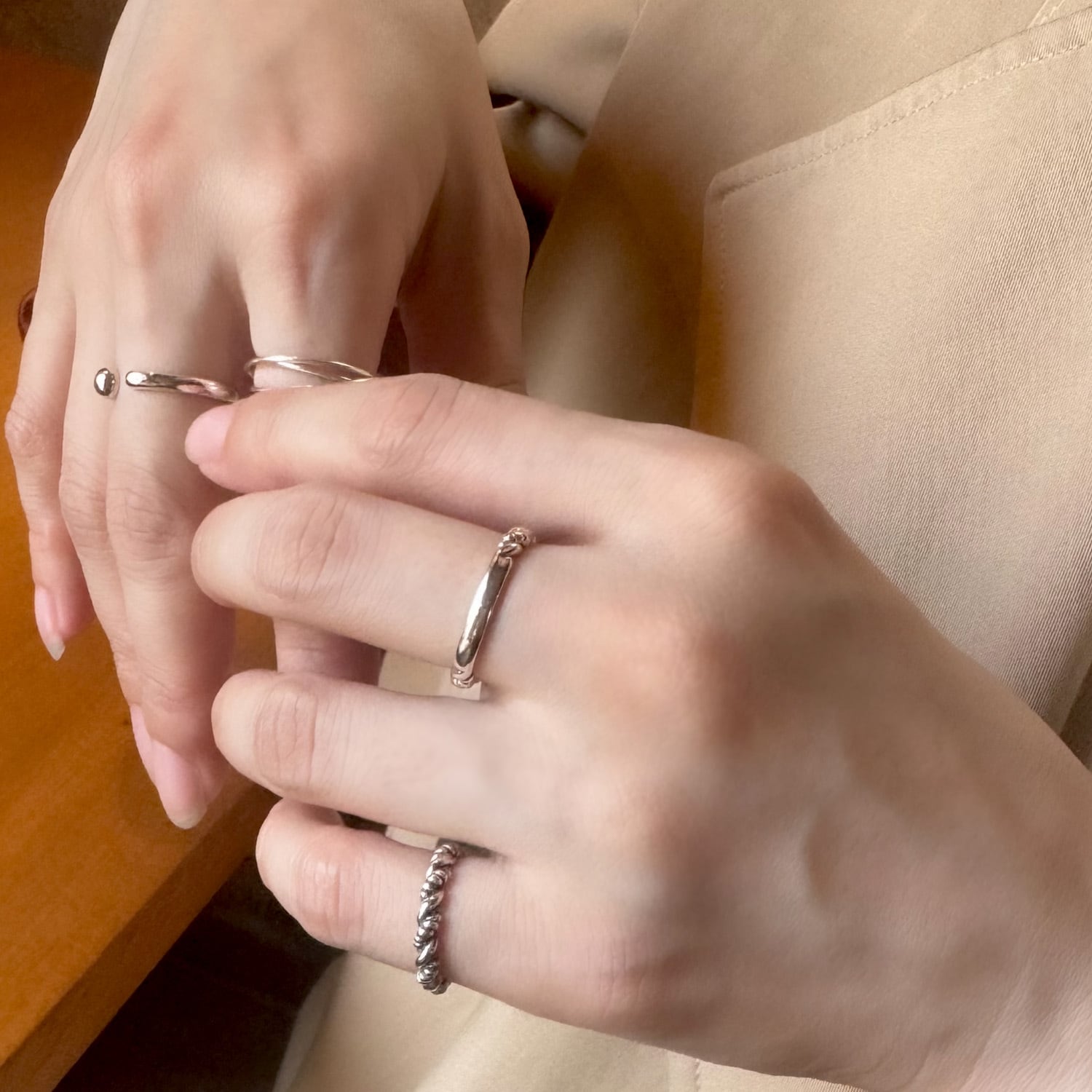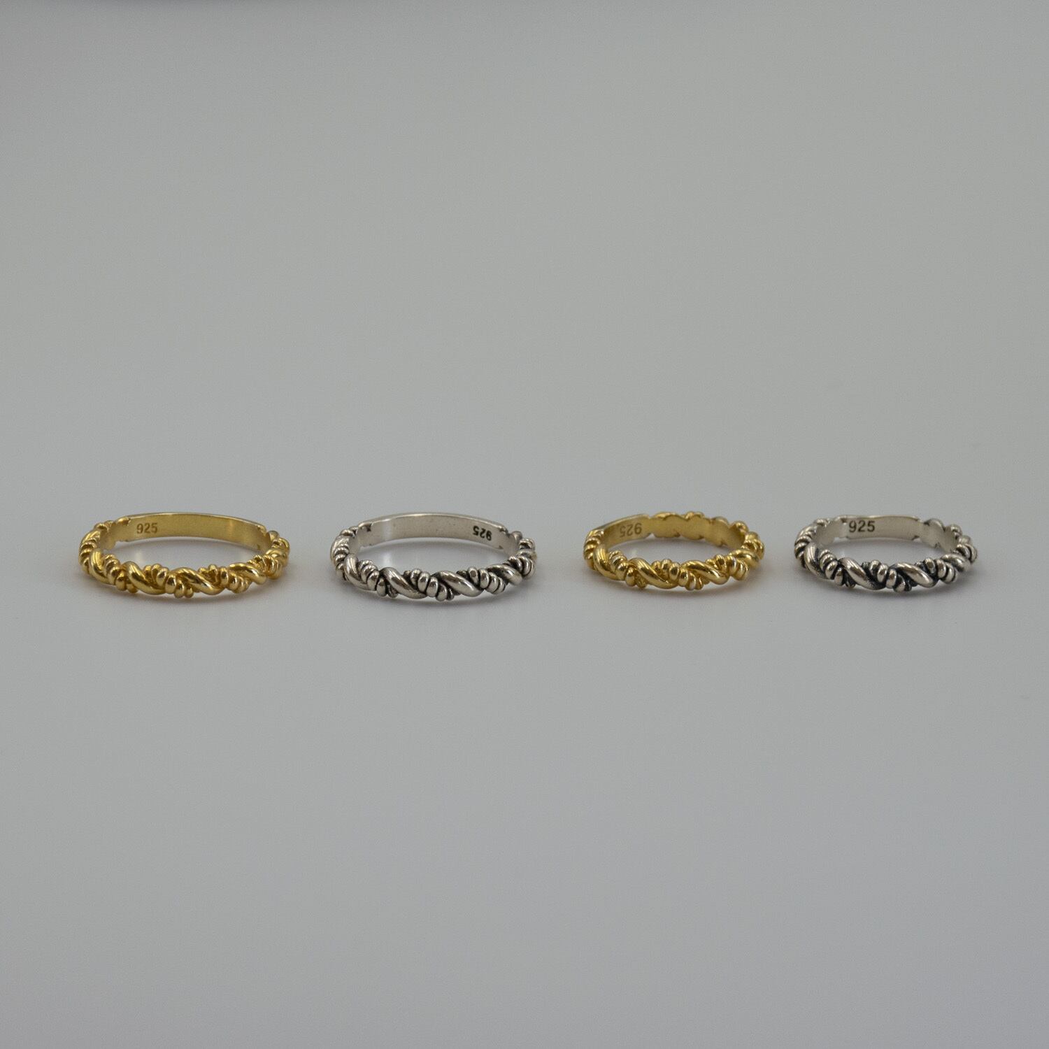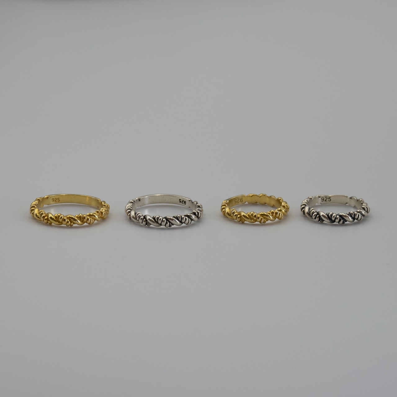 フロントにはプレート、周囲にはロープとラインをねじり合わせてツイストを施したSilver925 recorrer ring 0332