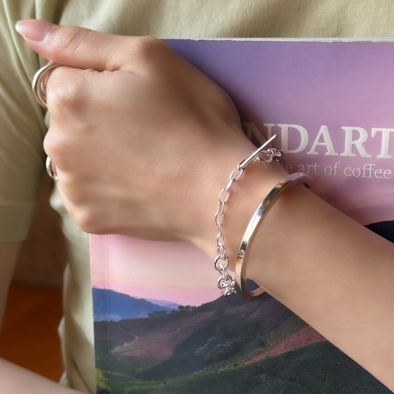 流れるようなラインのデザインが手首を優雅に彩り、どんなスタイルにもフィットします。カジュアルからフォーマルまで幅広いコーディネートと相性抜群です!毎日の装いにちょっとした特別感をプラスしてくれます。