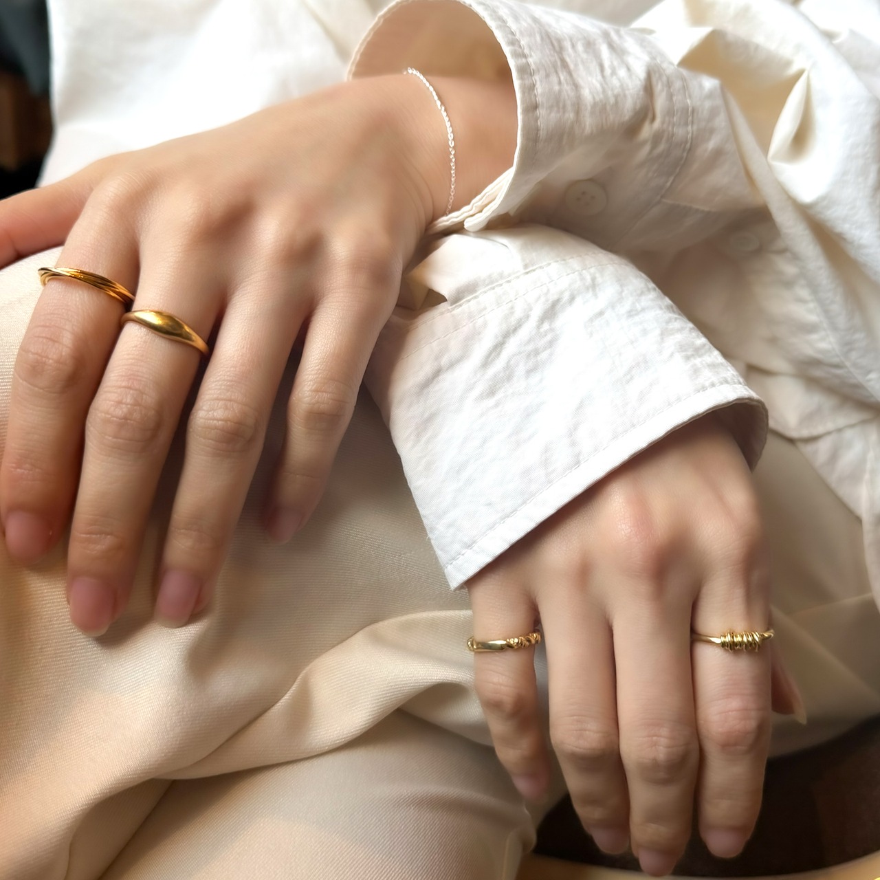 細いリングの流れがとても綺麗で、着けるときの重なり具合で毎回表情が変わるのもお楽しみください♡